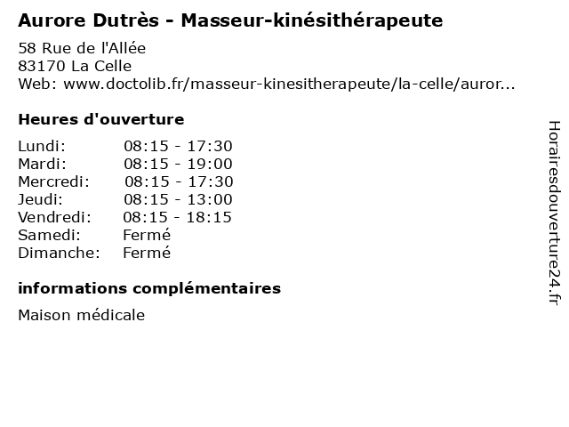 Termes de recherche pour Aurore Dutrès - Masseur-kinésithérapeute:médicale, maison, aurore, celle, masseur, kinésithérapeute, 83170, dutres |