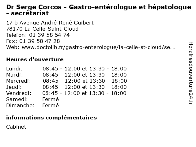 1 Dr. Michel Benazra - Gastro-entérologue hépatologue (Distance: 1,96 km) 21 rue Moxouris, 78150 Le Chesnay benazra, consultation, docteur, dr., entérologue, gastro, hépatologue, med, medecine, medical, michel, médecin, traitement 2 Dr Kamel Benghalia - Gastro-entérologue et hépatologue (Distance: 1,96 km) 21 rue Moxouris, 78150 Le Chesnay benghalia, consultation, docteur, dr, entérologue, et, gastro, hépatologue, kamel, med, medecine, medical, médecin, traitement 3 Dr Céline Lobry - Gastro-entérologue et hépatologue (Distance: 1,96 km) 21 rue Moxouris, 78150 Le Chesnay celine, consultation, céline, docteur, dr, entérologue, et, gastro, hépatologue, lobry, med, médecin, médecine, traitement 4 Dr Amel Mahmoudi - Gastro-entérologue et hépatologue (Distance: 1,96 km) 21 rue Moxouris, 78150 Le Chesnay amel, consultation, docteur, dr, entérologue, et, gastro, hépatologue, mahmoudi, med, médecin, médecine, traitement 5 Pr Pascal Crenn - Gastro-entérologue et hépatologue (Distance: 2,93 km) 104 boulevard Raymond Poincaré, 92380 Garches consultation, crenn, docteur, entérologue, et, gastro, hépatologue, med, médecin, médecine, pascal, pr, traitement 6 Dr Patrick Le Bars - Gastro-entérologue et hépatologue (Distance: 4,19 km) 9 Bis Avenue de Saint-Germain, 78560 Le Port-Marly bars, docteur, dr, entérologue, et, gastro, generaliste, hépatologue, le, medecin, patrick, sante |