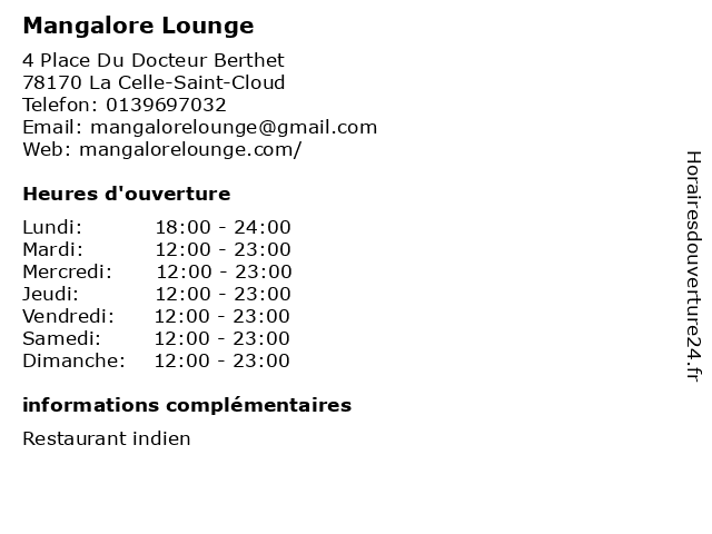 1 Mangalore Lounge (Distance: 0,00 km) 4 Place du Docteur Berthet, 78170 La Celle Saint-Cloud boisson, curry, indien, lounge, mangalore, menus, poulet, restaurant, tandoori 2 Archibald Bar Lounge (Distance: 8,79 km) 7 bd Galliéni, 92130 Issy les Moulineaux archibald, bar, bistrot, lounge, restaurant 3 Makassar Lounge & Restaurant (Distance: 11,26 km) 39 Avenue de Wagram, 75017 Paris bars, clubs, drinks, lounge, lounges, makassar, restaurant 5 The Beauty Lounge (Distance: 14,34 km) 69 Rue d'Argout, 75002 Paris bars, beauty, clubs, drinks, lounge, lounges, the 6 Maybach-Lounge (Distance: 14,45 km) 45 Rue d'Aboukir, 75002 Paris bars, clubs, drinks, lounge, lounges, maybach |