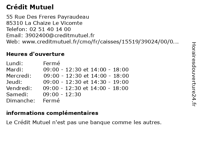 | Mardi | 09:00-12:30 et 14:00-18:00 |