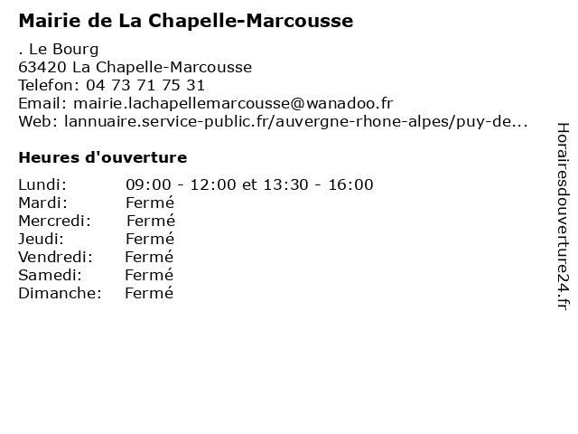 Termes de recherche pour Mairie de La Chapelle-Marcousse:la, de, chapelle, administration, mairie, assoc public, marcousse |