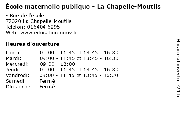 Termes de recherche pour École maternelle publique - La Chapelle-Moutils:la, chapelle, services, ecole, education, maternelle, publique, moutils |