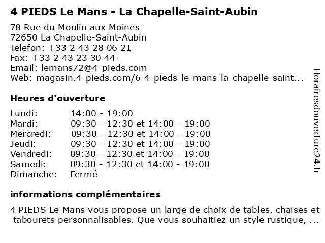 Termes de recherche pour 4 PIEDS Le Mans - La Chapelle-Saint-Aubin:la, le, saint, chapelle, mans, aubin, pieds |