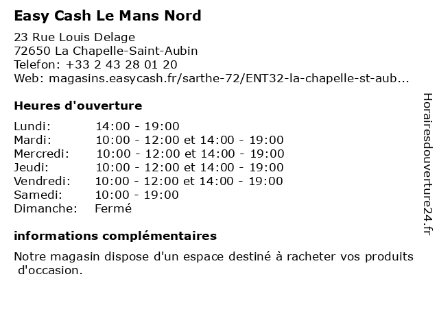 | Mardi | 10:00-12:00 et 14:00-19:00 |