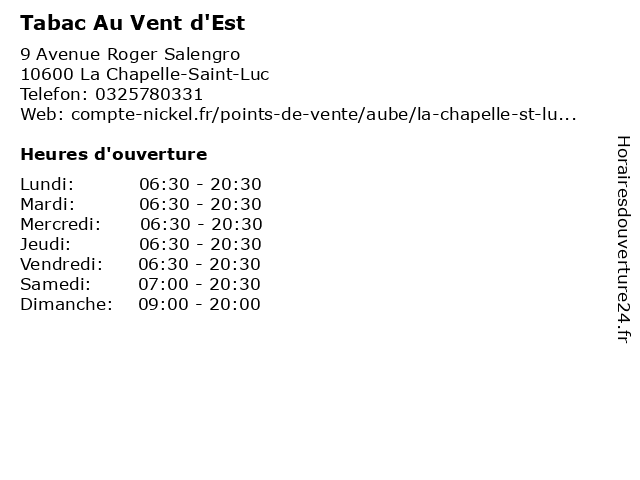 | Vendredi | 06:30-20:30 |