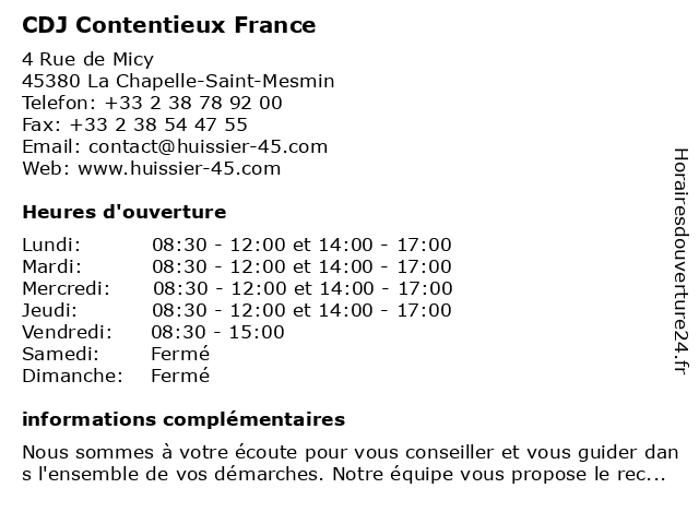 | Lundi | 08:30-12:00 et 14:00-17:00 |