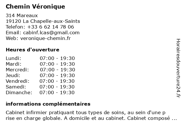 1 Cottard-Cheyssial Véronique (Distance: 0,13 km) Lieu-dit Le Mareau, 19120 La Chapelle-aux-Saints cheyssial, cottard, véronique 2 Chemin de Fer Touristique Du Haut Quercy (Distance: 9,52 km) La Gare, 46600 Martel chemin, de, du, fer, haut, quercy, touristique 3 Véronique Vialettes-Amouroux - Office notarial (Distance: 9,54 km) - Route de Souillac, 46600 Martel amouroux, assoc, biens, notaire, notaires, notarial, office, vialettes, véronique 4 Véronique Rougerie - Sage-femme (Distance: 19,90 km) - Avenue Docteur Roux, 46400 Saint-Céré consultation, docteur, femme, med, médecin, médecine, rougerie, sage, traitement, veronique, véronique 5 Véronique Rigal - Psychologue (Distance: 20,18 km) 28 route de Galop, 19100 Brive-la-Gaillarde folie, psychiatre, psychiatrie, psychiatrique, psychologue, rigal, véronique 6 |