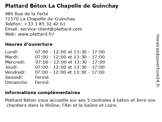 1 Plattard SAS La Chapelle (Distance: 0,00 km) 489 Rue de la Ferté, 71570 La Chapelle-de-Guinchay bois, carrelage, chapelle, la, matériaux de construction, menuiserie, plattard, sanitaire, sas, travaux publics 2 Plattard Négoce La Chapelle de Guinchay (Distance: 0,14 km) Les Burriers Rue de la Ferté, 71570 La Chapelle-de-Guinchay bois, carrelage, chapelle, de, guinchay, la, matériaux de construction, menuiserie, négoce, plattard, sanitaire, travaux publics 3 CEMEX Matériaux, unité de production béton de La Chapelle de Guinchay (Distance: 0,15 km) 541 Route de la ferté, 71570 La Chapelle de Guinchay béton, cemex, chapelle, de, fournisseur de matériel pour le béton, guinchay, la, matériaux, production, unité 4 Bourgogne Construction Bois Béton - BC2B (Distance: 8,80 km) 4 Rue Ferdinand Dubief, 71960 Prissé bardage, bc2b, bois, bourgogne, béton, charpentes, construction, couverture, maçonnerie 6 Plattard Négoce TP Mâcon (Distance: 9,21 km) 262 Rue Lavoisier, 71000 Mâcon bois, carrelage, matériaux de construction, menuiserie, mâcon, négoce, plattard, sanitaire, tp, travaux publics |