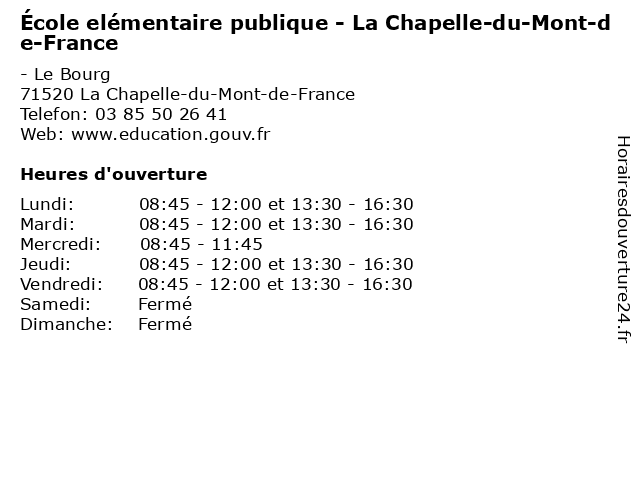 | Lundi | 08:45-12:00 et 13:30-16:30 |