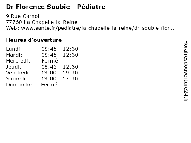 1 Dr Florence Soubie - Pédiatre (Distance: 19,38 km) 10 Rue des Petits Chaumes, 77250 Moret-sur-Loing bebe, dr, florence, nourisson, pédiatre, pédiatrie, soubie 2 Medard Sabrina Florence (Distance: 10,33 km) 10 Rue Charles Trenet, 77140 Nemours florence, medard, restaurants, sabrina 3 Dr Sophie Langlais - Pédiatre (Distance: 10,39 km) 4 Avenue Carnot, 77140 Nemours dr, enfant, langlais, pediatre, pédiatre, sante, soins, sophie 4 Artus-Resseguier Florence (Distance: 13,70 km) 66 Rue de France, 77300 Fontainebleau artus, florence, resseguier 5 Florence Lecaux - Sage-femme (Distance: 14,27 km) 55 boulevard du Maréchal Joffre, 77300 Fontainebleau consultation, docteur, dr, femme, florence, lecaux, med, médecin, sage, traitement 6 Dr Pascal Saunier - Pédiatre (Distance: 14,27 km) 55 Boulevard du Maréchal Joffre, 77300 Fontainebleau bebe, ch, dr, du, et, fontainebleau, marne, nourisson, pascal, pédiatre, pédiatrie, saunier, seine, sud |