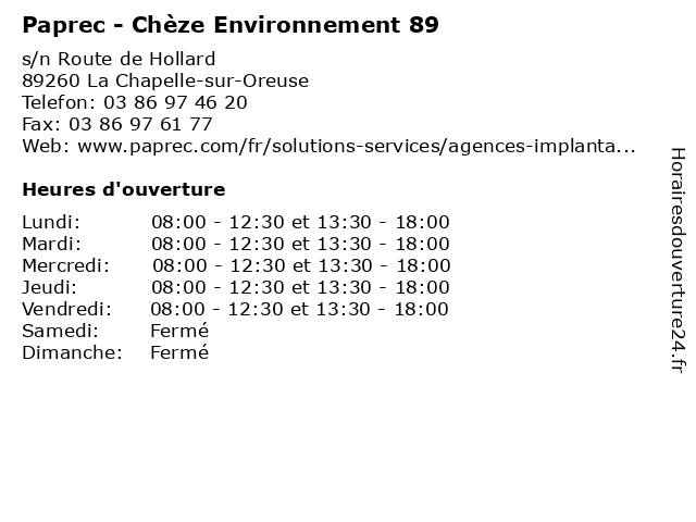 | Mercredi | 08:00-12:30 et 13:30-18:00 |