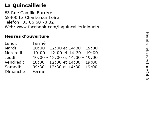 | Samedi | 09:30-12:30 et 14:30-19:00 |