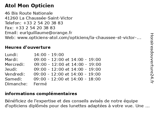 | Mercredi | 09:00-12:00 et 14:00-19:00 |