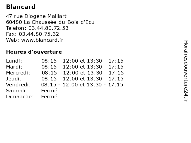| Lundi | 08:15-12:00 et 13:30-17:15 |