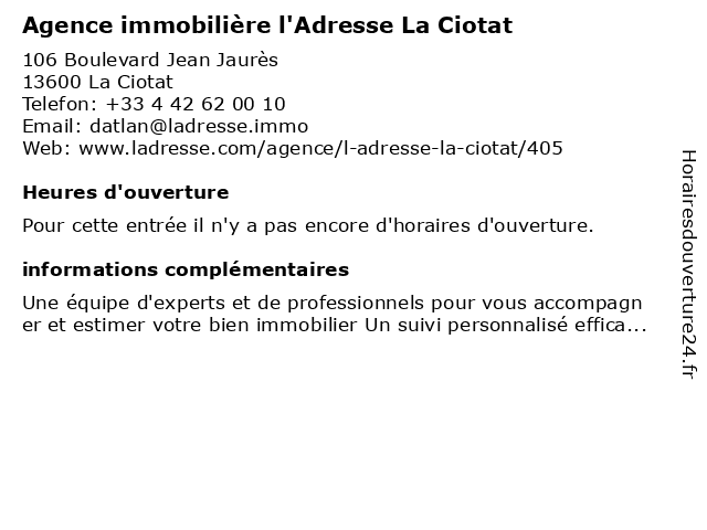 Appeler Agence immobilière l'Adresse La Ciotat | |