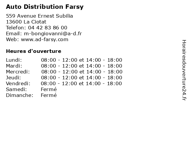 | Lundi | 08:00-12:00 et 14:00-18:00 |