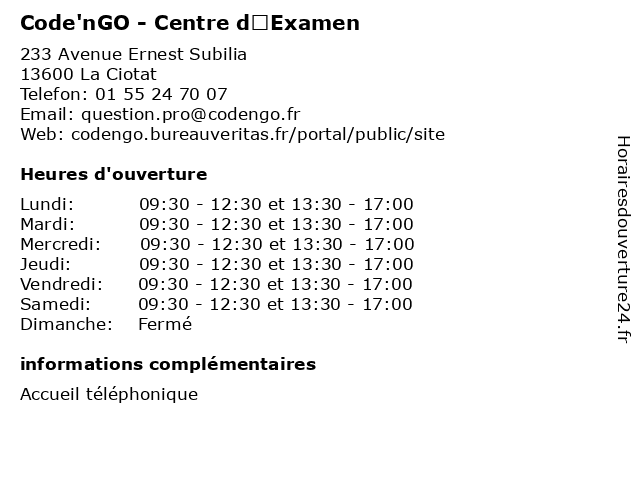 | Samedi | 09:30-12:30 et 13:30-17:00 |