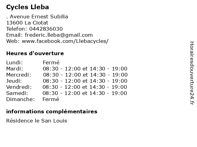 | Mardi | 08:30-12:00 et 14:30-19:00 |