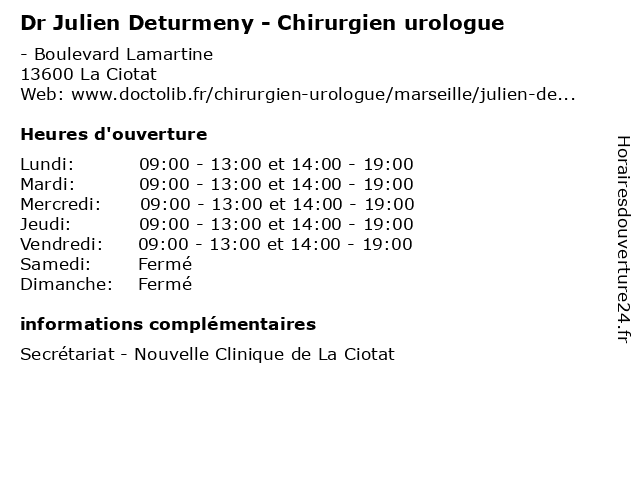 | Lundi | 09:00-13:00 et 14:00-19:00 |