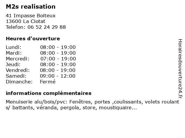 1 3 Art & fenêtres - Les Menuisiers du Sud (Distance: 2,42 km) 35 Chemin du Puits de Brunet, 13600 La Ciotat art, du, fenêtres, les, menuisiers, sud 4 Ferronnerie Serrurerie Roland-Viaux (Distance: 2,48 km) 1 Avenue Ernest Subilia, 13600 La Ciotat ferronnerie, roland, serrurerie, viaux 5 Action Métallerie (Distance: 2,95 km) - Avenue de la Marine, 13600 La Ciotat action, ferronnerie, métallerie, métallique, ouvrages, serrurerie 6 Matt's Renov Painting (Distance: 3,16 km) 99 Avenue Du Président J F Kennedy, 13600 La Ciotat aménagement intérieur, entreprise de nettoyage, matt's, painting, pose de moquette, pose de parquet en bois, renov |