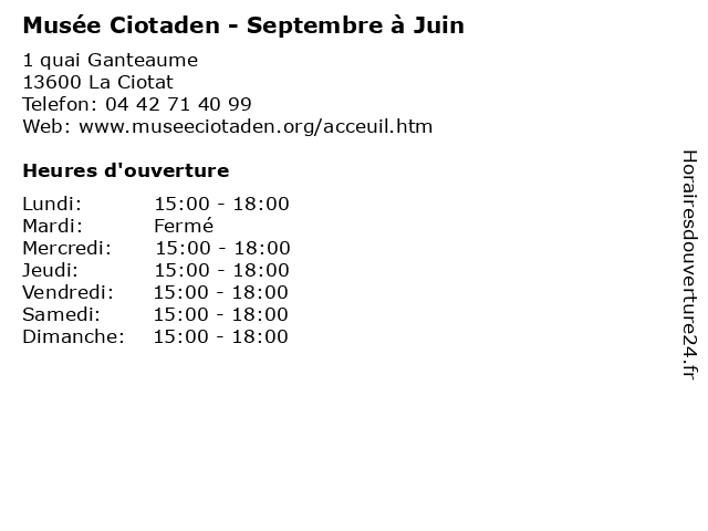 Termes de recherche pour Musée Ciotaden - Septembre à Juin:du, au, musée, 1er, septembre, juin, 30, exposition, visite, ciotaden |