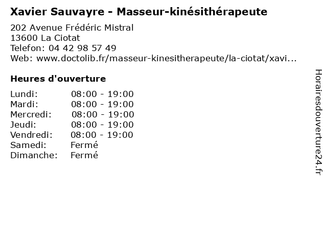 | Lundi | 08:00-19:00 |