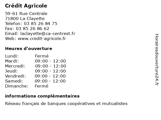 1 Crédit Agricole (Distance: 9,69 km) 4 Rue Gambetta, 71170 Chauffailles agence, agricole, assurance, bancaire, banque, crédit 2 Crédit Agricole (Distance: 13,84 km) - Grande Rue, 71520 Matour agence, agricole, assurance, bancaire, banque, crédit 3 Crédit Agricole (Distance: 15,32 km) - Rue Centrale, 71520 Dompierre-les-Ormes agence, agricole, assurance, banque, credit, crédit, mutuel, pyrenees 4 Crédit Agricole (Distance: 16,24 km) 3 Place du Temeraire, 71120 Charolles agence, agricole, assurance, bancaire, banque, crédit 5 Crédit Agricole (Distance: 17,96 km) - Rue du Haut Beaujolais, 69860 Monsols agence, agricole, assurance, bancaire, banque, crédit 6 Crédit Agricole Loire - Haute-Loire (Distance: 14,43 km) - Rue du Commerce, 42670 Belmont-de-la-Loire agence, agricole, assurance, bancaire, banque, crédit, haute, loire |