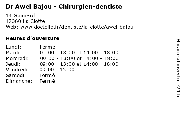 | Mardi | 09:00-13:00 et 14:00-18:00 |
