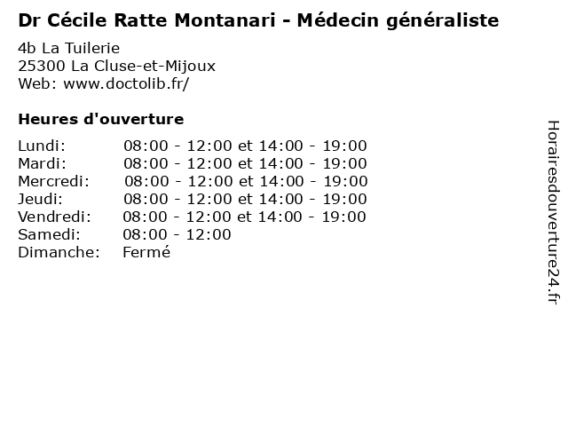 | Mercredi | 08:00-12:00 et 14:00-19:00 |