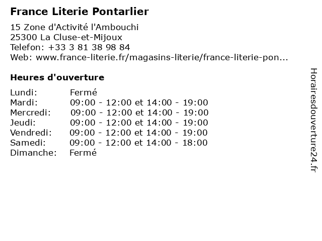 | Mardi | 09:00-12:00 et 14:00-19:00 |