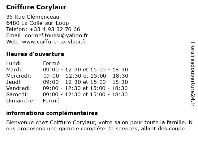 | Samedi | 09:00-12:30 et 15:00-18:30 |