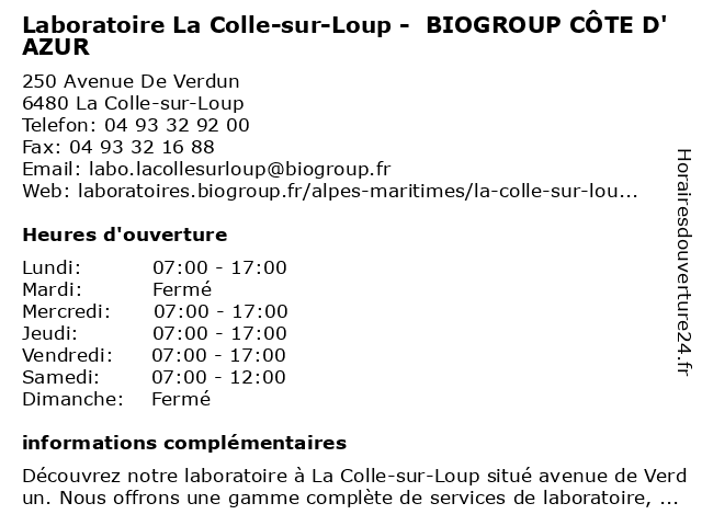 Termes de recherche pour Laboratoire La Colle-sur-Loup - BIOGROUP CÔTE D'AZUR:la, sur, laboratoire, cote, d'azur, loup, colle, biogroup, dépistages, laboratoire de diagnostic |
