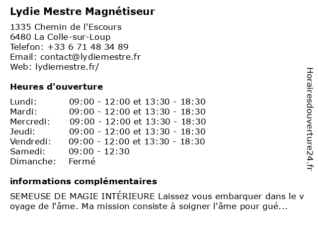 Lundi | 09:00-12:00 et 13:30-18:30 |