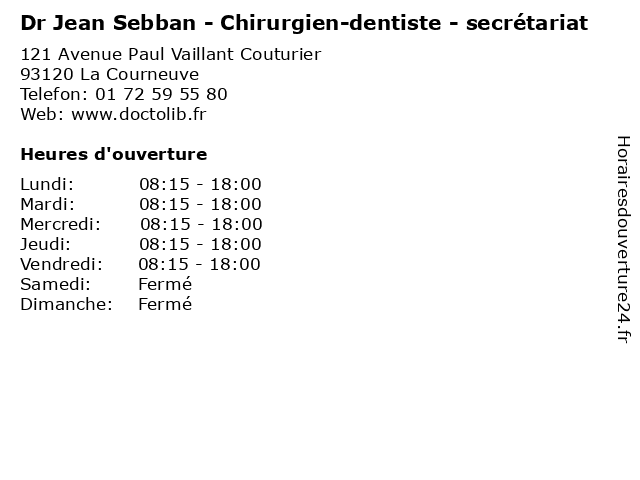 1 Dr Jean Sebban - Chirurgien-dentiste (Distance: 0,00 km) 121 Avenue Paul Vaillant Couturier, 93120 La Courneuve chirurgien, dentiste, dr, jean, médecin, médecine, médical, pharmaceutique, sebban, traitement 2 Dr Samuel Sebban - Chirurgien-dentiste (Distance: 3,74 km) 23 Rue Madeleine Vionnet, 93300 Aubervilliers chirurgien, dentiste, dr, médecin, médecine, médical, pharmaceutique, samuel, sebban, traitement 3 Dr Allan Sebban - Chirurgien-dentiste - secrétariat (Distance: 10,85 km) 460 Avenue du 8 Mai 1945, 93330 Neuilly-sur-Marne allan, chirurgien, chirurgien-dentiste, dentiste, dr, médecins, médicaments, santé, sebban, secrétariat, spécialiste 4 Dr Esther Sebban-Boukhris - Médecin généraliste (Distance: 10,90 km) 6 Rue Villebois Mareuil, 92400 Courbevoie boukhris, docteur, dr, esther, generaliste, généraliste, medical, médecin, sebban, soin 5 Sebban Arban Michele (Distance: 11,24 km) Studio 2Eme Etage, 75015 Paris arban, bailleurs, biens, immobiliers, michele, nra, sebban 6 Dr Chloé Sebban Zana - Médecin généraliste - secretariat (Distance: 11,53 km) 5B Rue du Transvaal, 92250 La Garenne-Colombes chloé, dr, généraliste, médecin, médecine, médical, pharmaceutique, sebban, secretariat, traitement, zana |