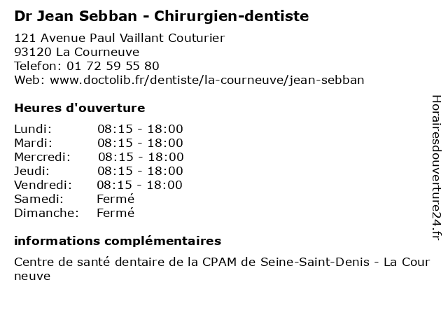 1 Dr Jean Sebban - Chirurgien-dentiste - secrétariat (Distance: 0,00 km) 121 Avenue Paul Vaillant Couturier, 93120 La Courneuve chirurgien, consultation, dentiste, docteur, dr, jean, med, médecin, médecine, sebban, secrétariat, traitement 2 Dr Samuel Sebban - Chirurgien-dentiste (Distance: 3,74 km) 23 Rue Madeleine Vionnet, 93300 Aubervilliers chirurgien, dentiste, dr, médecin, médecine, médical, pharmaceutique, samuel, sebban, traitement 3 Dr Allan Sebban - Chirurgien-dentiste - secrétariat (Distance: 10,85 km) 460 Avenue du 8 Mai 1945, 93330 Neuilly-sur-Marne allan, chirurgien, chirurgien-dentiste, dentiste, dr, médecins, médicaments, santé, sebban, secrétariat, spécialiste 4 Dr Esther Sebban-Boukhris - Médecin généraliste (Distance: 10,90 km) 6 Rue Villebois Mareuil, 92400 Courbevoie boukhris, docteur, dr, esther, generaliste, généraliste, medical, médecin, sebban, soin 5 Sebban Arban Michele (Distance: 11,24 km) Studio 2Eme Etage, 75015 Paris arban, bailleurs, biens, immobiliers, michele, nra, sebban 6 Dr Chloé Sebban Zana - Médecin généraliste - secretariat (Distance: 11,53 km) 5B Rue du Transvaal, 92250 La Garenne-Colombes chloé, dr, généraliste, médecin, médecine, médical, pharmaceutique, sebban, secretariat, traitement, zana |