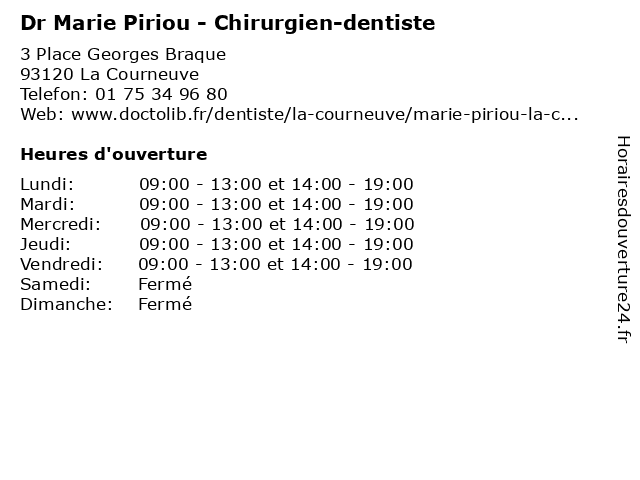 | Lundi | 09:00-13:00 et 14:00-19:00 |