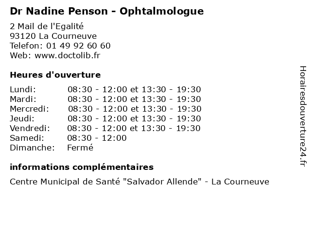 | Mercredi | 08:30-12:00 et 13:30-19:30 |