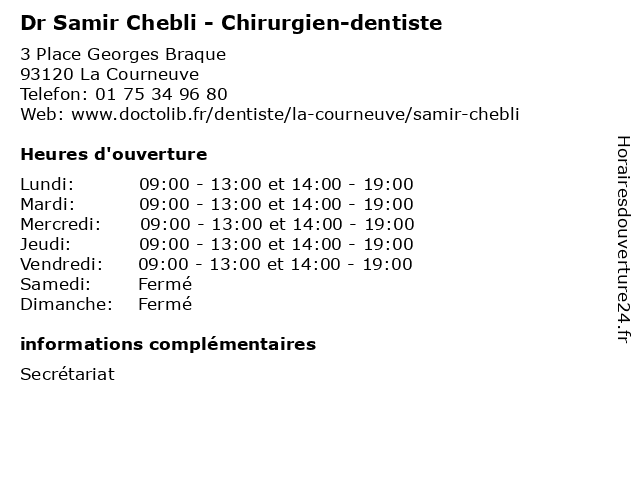 | Lundi | 09:00-13:00 et 14:00-19:00 |