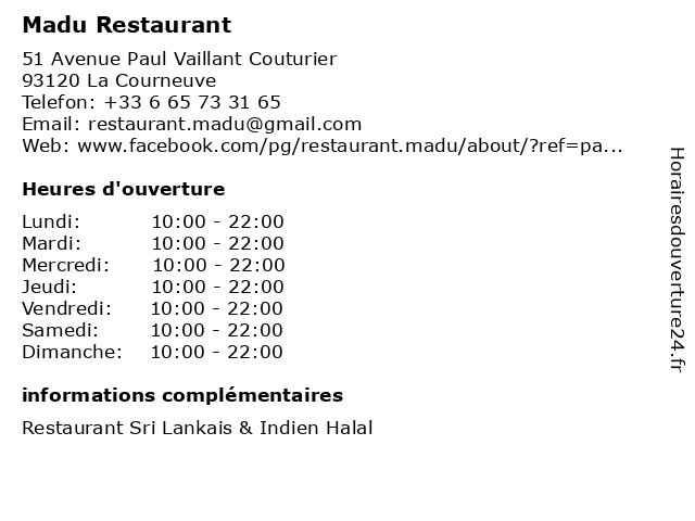 | Dimanche | 10:00-22:00 |