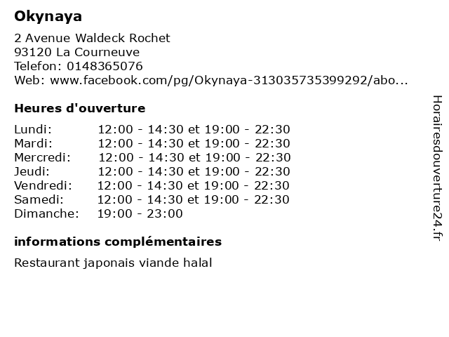 | Mardi | 12:00-14:30 et 19:00-22:30 |