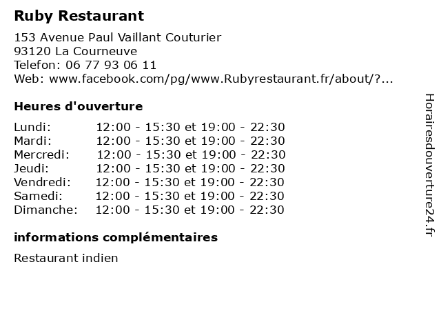 | Jeudi | 12:00-15:30 et 19:00-22:30 |