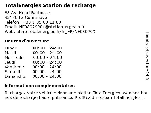 1 TotalEnergies Station de recharge (Distance: 0,20 km) 13 Rue Paul Verlaine, 93120 La Courneuve borne de recharge, borne de recharge autoroute, borne de recharge rapide, ccs, chademo, charge haute puissance, charge+, charging station, de, ev, high power charge, ma charge rapide, mobility, recharge, recharger ma voiture, recharger voiture, station, station autouroute, station de recharge, station-service, supercharger, tankstelle, total, totalaccess, totalenergie, totalenergies 2 TotalEnergies Station de recharge (Distance: 4,02 km) 4 Rue de la Gare, 75019 Paris borne de recharge, borne de recharge autoroute, borne de recharge rapide, ccs, chademo, charge haute puissance, charge+, charging station, de, ev, high power charge, ma charge rapide, mobility, recharge, recharger ma voiture, recharger voiture, station, station autouroute, station de recharge, station-service, supercharger, tankstelle, total, totalaccess, totalenergie, totalenergies 3 TotalEnergies Station de recharge (Distance: 4,08 km) 120 Blvd Périphérique, 75019 Paris borne de recharge, borne de recharge autoroute, borne de recharge rapide, ccs, chademo, charge haute puissance, charge+, charging station, de, ev, high power charge, ma charge rapide, mobility, recharge, recharger ma voiture, recharger voiture, station, station autouroute, station de recharge, station-service, supercharger, tankstelle, total, totalaccess, totalenergie, totalenergies 4 TotalEnergies Station de recharge (Distance: 6,05 km) 29 Avenue de la Porte de Saint-Ouen, 75017 Paris borne de recharge, borne de recharge autoroute, borne de recharge rapide, ccs, chademo, charge haute puissance, charge+, charging station, de, ev, high power charge, ma charge rapide, mobility, recharge, recharger ma voiture, recharger voiture, station, station autouroute, station de recharge, station-service, supercharger, tankstelle, total, totalaccess, totalenergie, totalenergies 5 TotalEnergies Station de recharge (Distance: 12,91 km) 62-68 Rte des Petits Ponts, 93290 Tremblay-en-France borne de recharge, borne de recharge autoroute, borne de recharge rapide, ccs, chademo, charge haute puissance, charge+, charging station, de, ev, high power charge, ma charge rapide, mobility, recharge, recharger ma voiture, recharger voiture, station, station autouroute, station de recharge, station-service, supercharger, tankstelle, total, totalaccess, totalenergie, totalenergies 6 TotalEnergies Station de recharge (Distance: 12,98 km) 29B Boulevard du Maréchal Foch, 93330 Neuilly-sur-Marne borne de recharge, borne de recharge autoroute, borne de recharge rapide, ccs, chademo, charge haute puissance, charge+, charging station, de, ev, high power charge, ma charge rapide, mobility, recharge, recharger ma voiture, recharger voiture, station, station autouroute, station de recharge, station-service, supercharger, tankstelle, total, totalaccess, totalenergie, totalenergies |