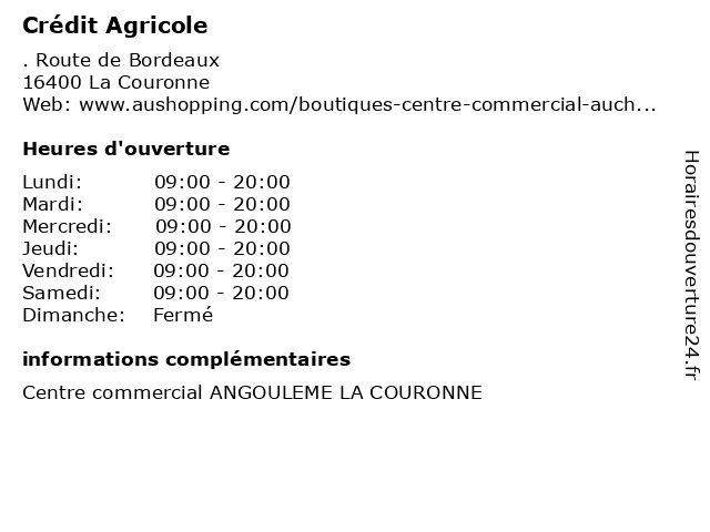 Termes de recherche pour Crédit Agricole:la, couronne, commercial, centre, agricole, crédit, angouleme, aushopping |