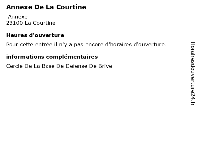 Termes de recherche pour Annexe De La Courtine:brive, defense, courtine, restaurants, cercle, annexe, base |