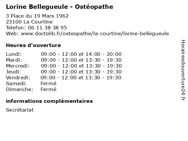 | Mardi | 09:00-12:00 et 13:30-19:30 |