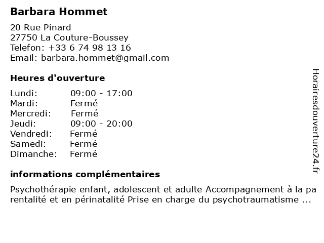 1 Damamme Aumond Barbara (Distance: 13,55 km) 31 Rue Aristide Briand, 27120 Pacy Sur Eure aumond, barbara, damamme, restaurants 2 Dr Barbara Mitrail - Gériatre (Distance: 18,54 km) 44 Avenue du Président John Fitzgerald Kennedy, 28100 Dreux barbara, consultation, docteur, dr, gériatre, med, mitrail, médecin, traitement 3 Chez Claude (Distance: 24,26 km) Le Chesnay, 27240 Mesnils Sur Iton barbara, blanfune, chez, claude, madame, restaurants 4 Petite Pause Plaisir (Distance: 49,52 km) Petite Pause Plaisir, 28700 Le Gue De Longroi barbara, boisseaux, marguerite, pause, petite, plaisir, restaurants, rolande 5 Vlach Barbara Ludmila (Distance: 50,24 km) 47 Avenue Auguste Renoir, 78160 Marly Le Roi barbara, ludmila, restaurants, vlach 6 Dr Barbara Bray - Médecin généraliste (Distance: 50,61 km) 1 Chemin de la Croisette, 95650 Boissy-l'Aillerie barbara, bray, dr, généraliste, médecin, médecine, médical, pharmaceutique, traitement |