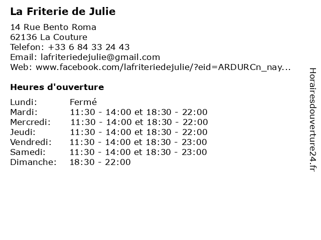 | Vendredi | 11:30-14:00 et 18:30-23:00 |