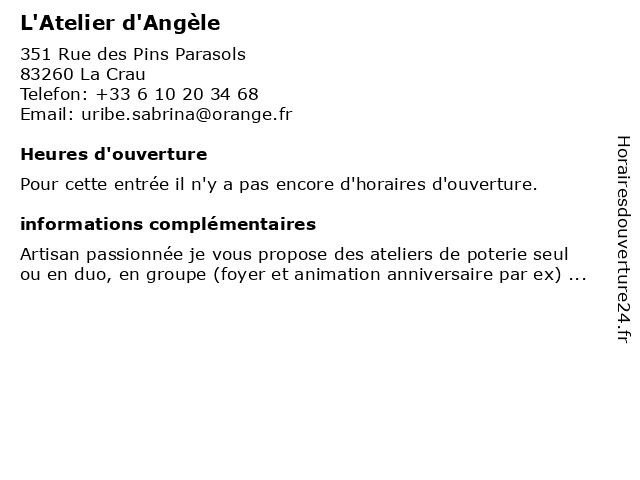 Termes de recherche pour L'Atelier d'Angèle:l'atelier, d'angele |