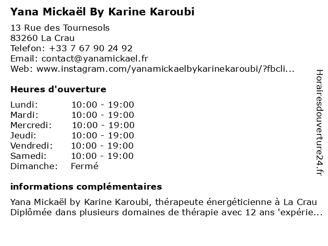 | Lundi | 10:00-19:00 |
