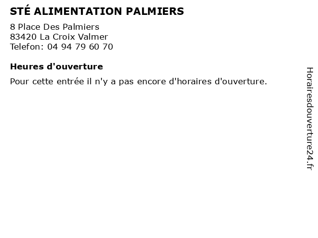 | Appeler STÉ ALIMENTATION PALMIERS | |